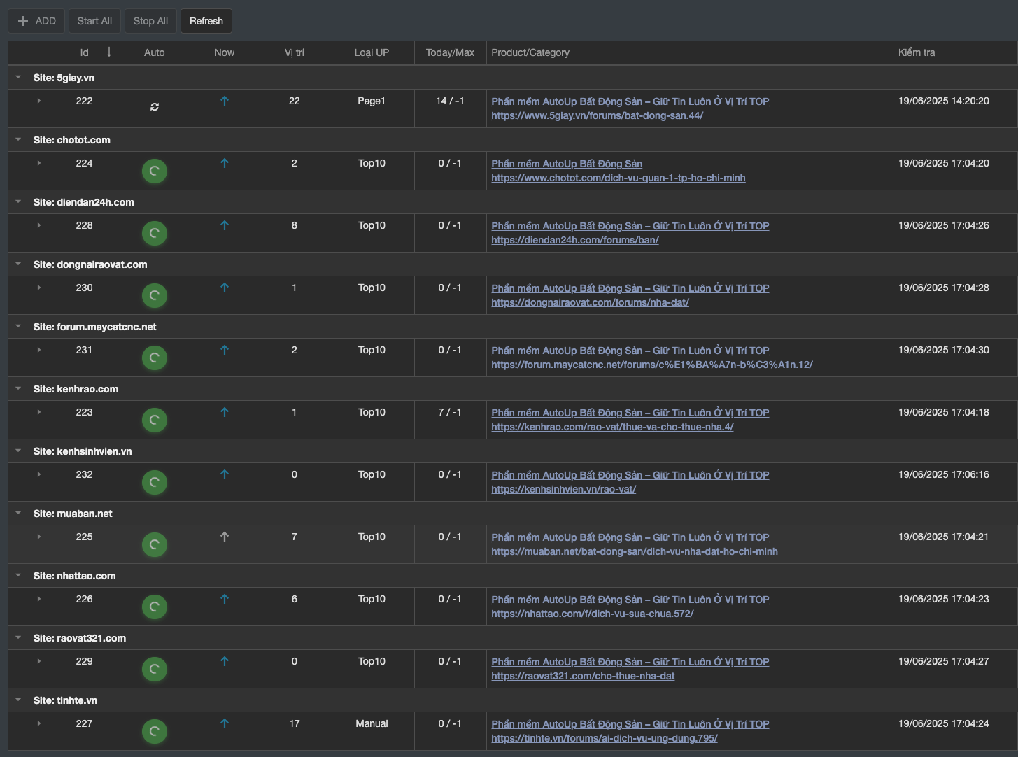 AutoUp hỗ trợ đăng tin, re-up và quản lý tài khoản trên các website bất động sản và diễn đàn phổ biến tại Việt Nam.